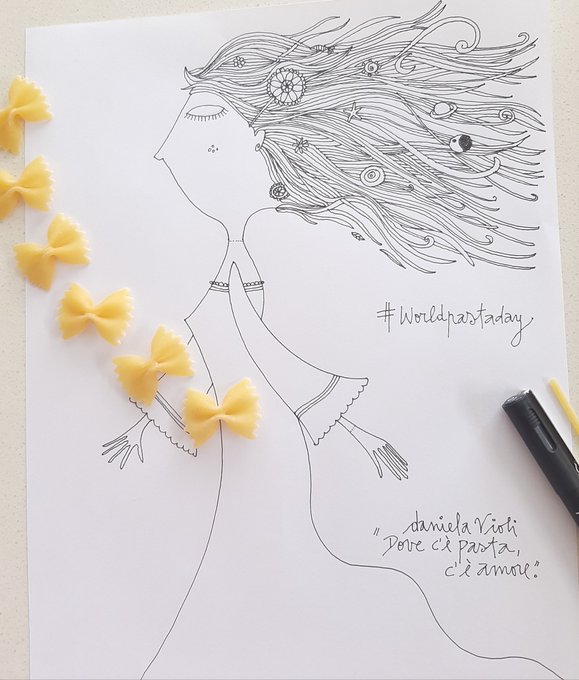 Dove c'è pasta (quasi sempre) c'è amore. #WorldPastaDay #Italy #Italia #Pasta #Spaghetti #Farfalle #DanielaVioli #inktober2020 #Inktober #ilustracion #mujer #Inteligenciaemocional