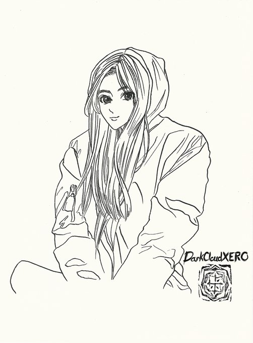 Inktober 2020 03 Bulky #darkcloudxero #Inktober #inktober2020 #bulky #cutegirl #ink #pen #marupen #longhair pixiv.net/artworks/84792…