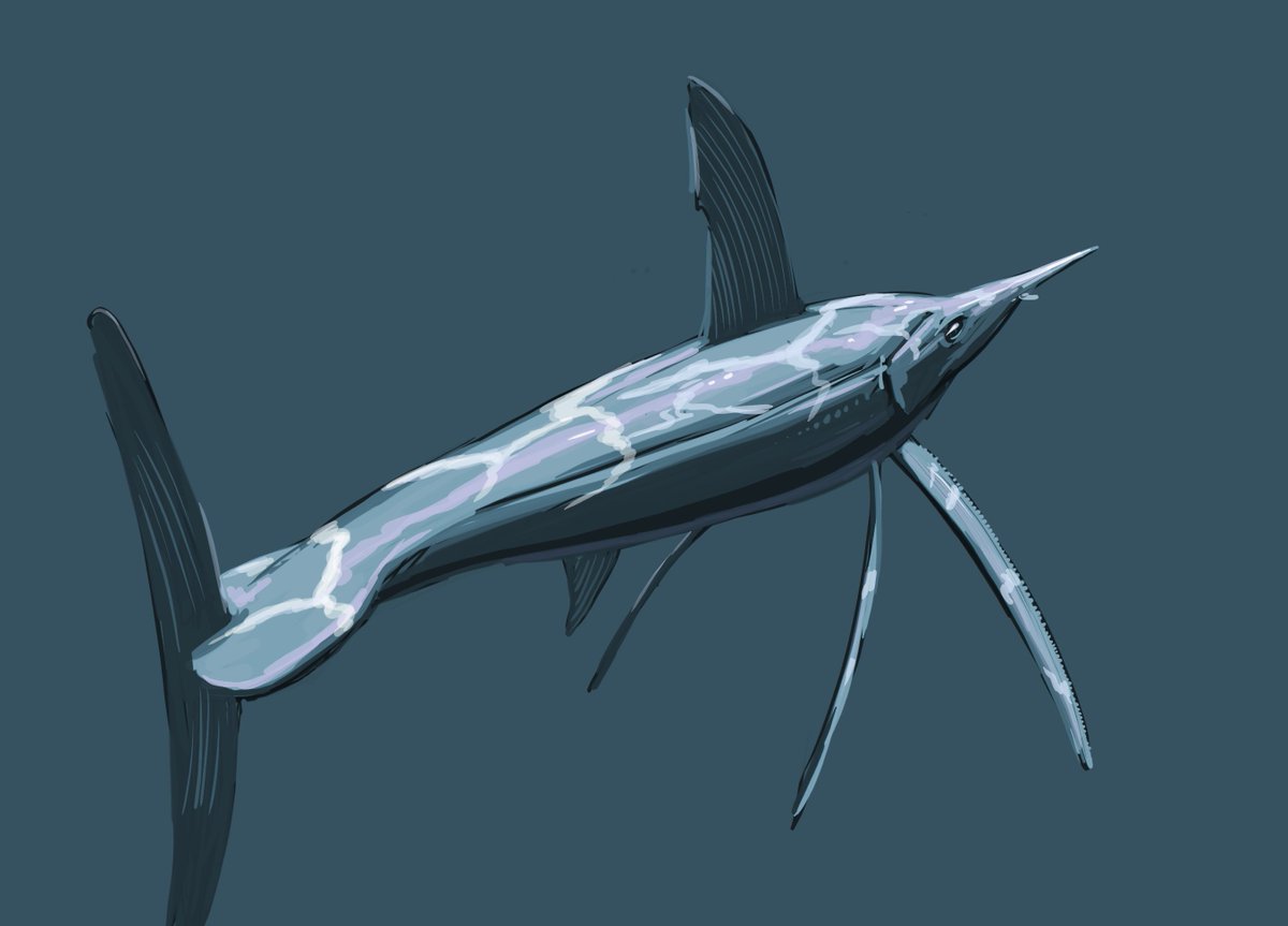 Results of tonight's #paleostream Ceratosaurus, , Metridiocherus and Ajnabia( with sneaky Liodon) #paleoart #sciart #dinosaur #fish #pig #mosasaur #ceratosarus #Protosphyraena #Ajnabia #Metridiocherus