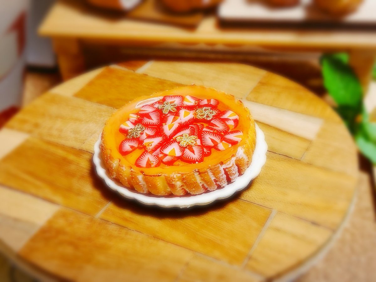 お花つけると可愛いかなって思って いちごタルトにつけてみました❢❢ このお花のパーツよう探さなくてもう在庫が…(´TωT`)(笑) #AngelCafe #ハンドメイド #ハンドメイド好きな人と繋がりたい #羊毛フェルト