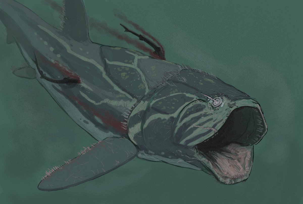 Some weird animals . #paleoart #drawing #paleoartwork #paleoartist #cacops #megalancosaurus #helicoprion