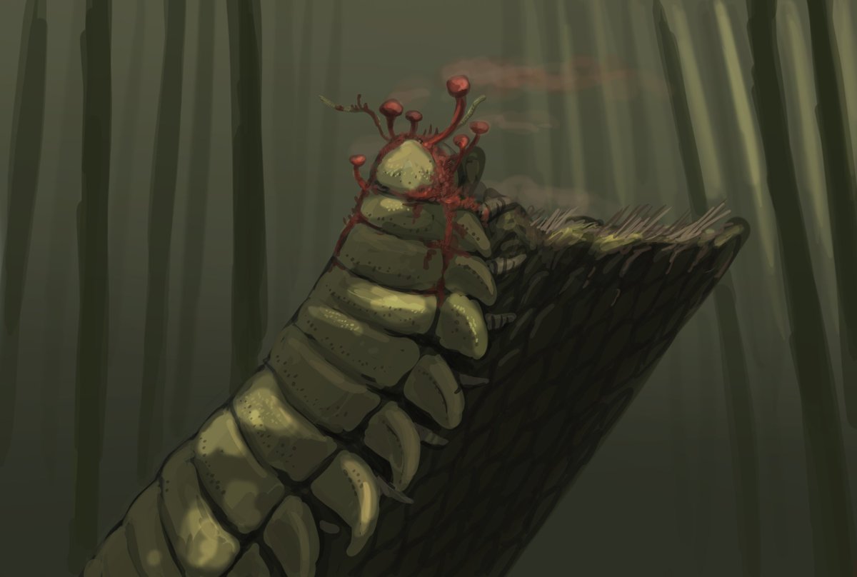 Results from the parasite (Halloween Hangover) #paleostream Diademodus and a bunch of parasites feeding on a Titanichtys, Wonambi with ticks, fungi infected Athropleura and Cacops with worms in it's eye. #paleoart #animals #parasites #sketches #sciart #fish #amphibian #snakes