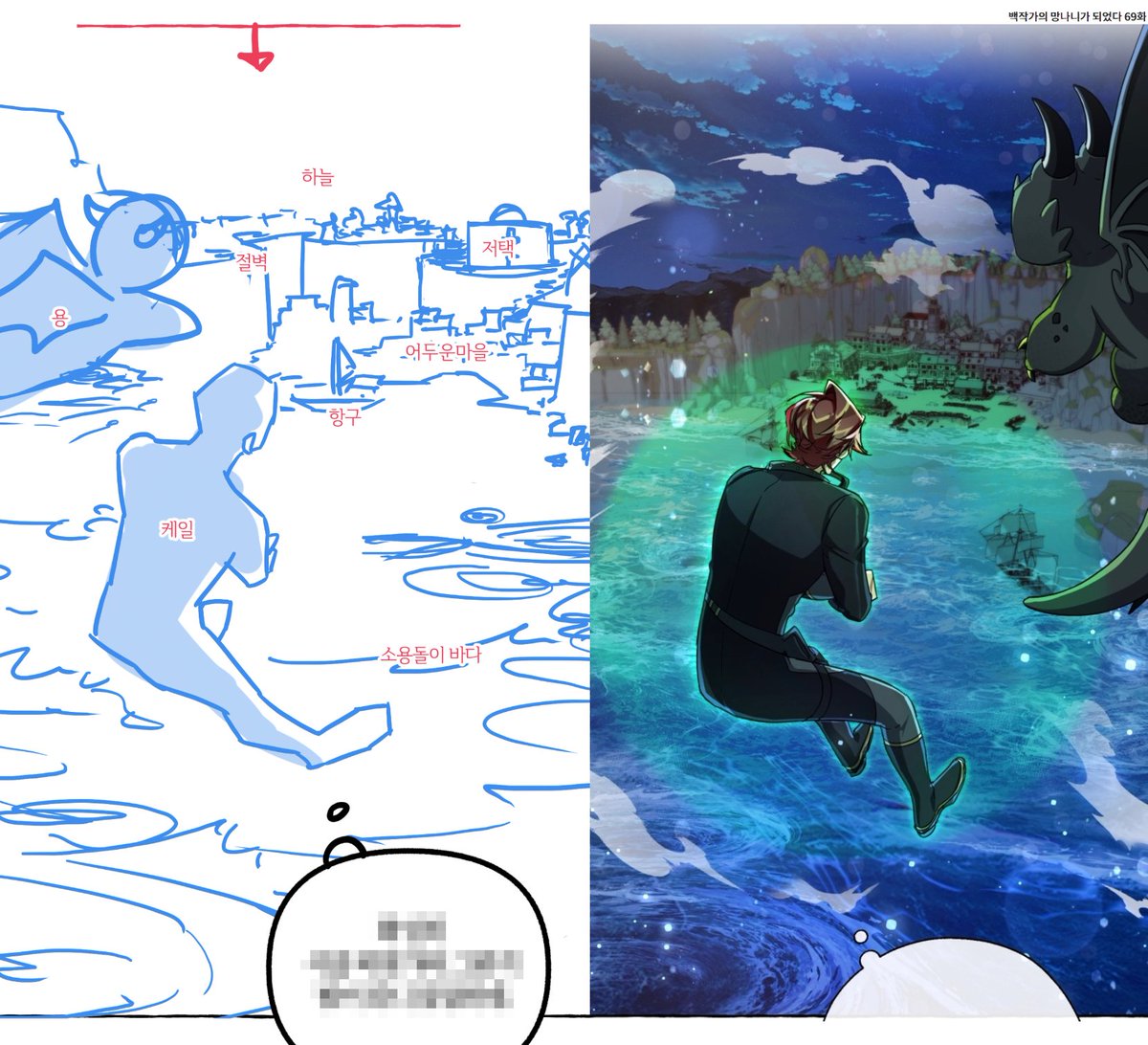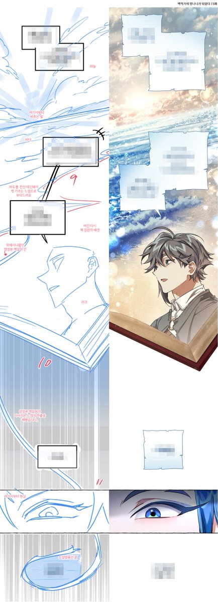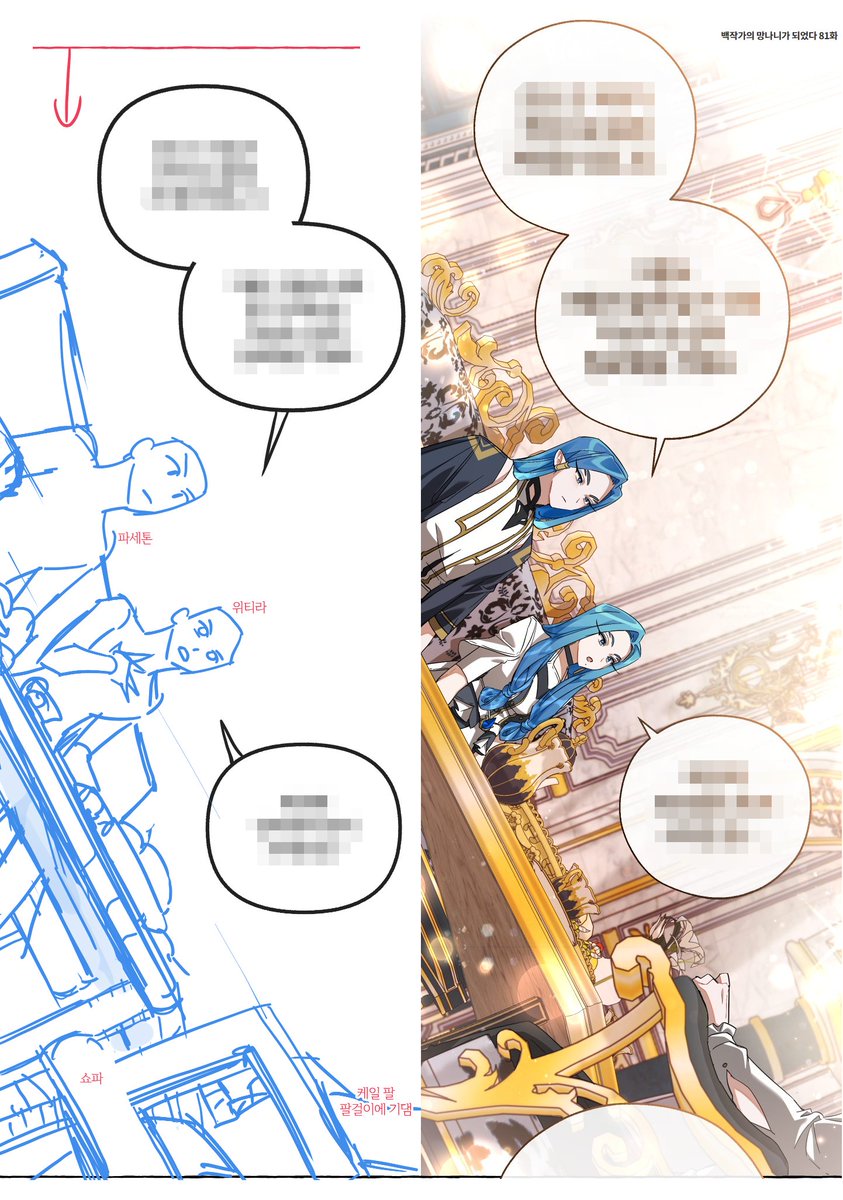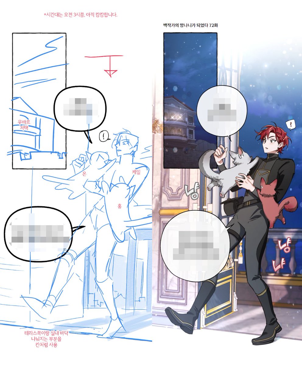 <백작가의 망나니가 되었다> 시즌2 콘티 이것저것 모아서 업로드~ 고래족 남매 디자인을 모르고 작업했었는데, 업로드 된 것을 처음 보고 너무 아름다워서 기립박수를 쳤던 기억이 있네요.🥹🖤 page.kakao.com/home?seriesId=…