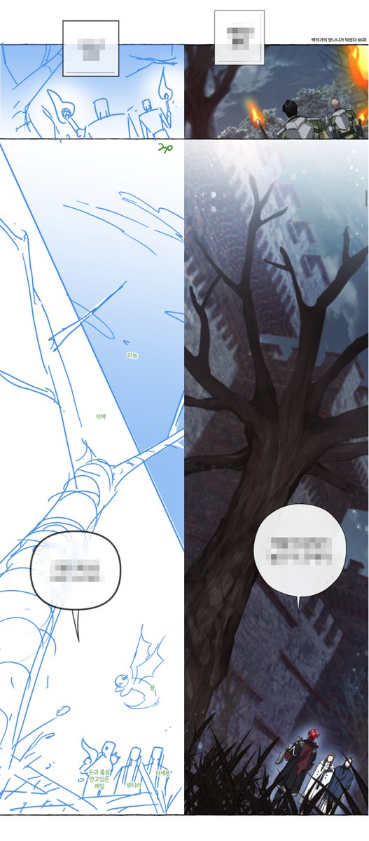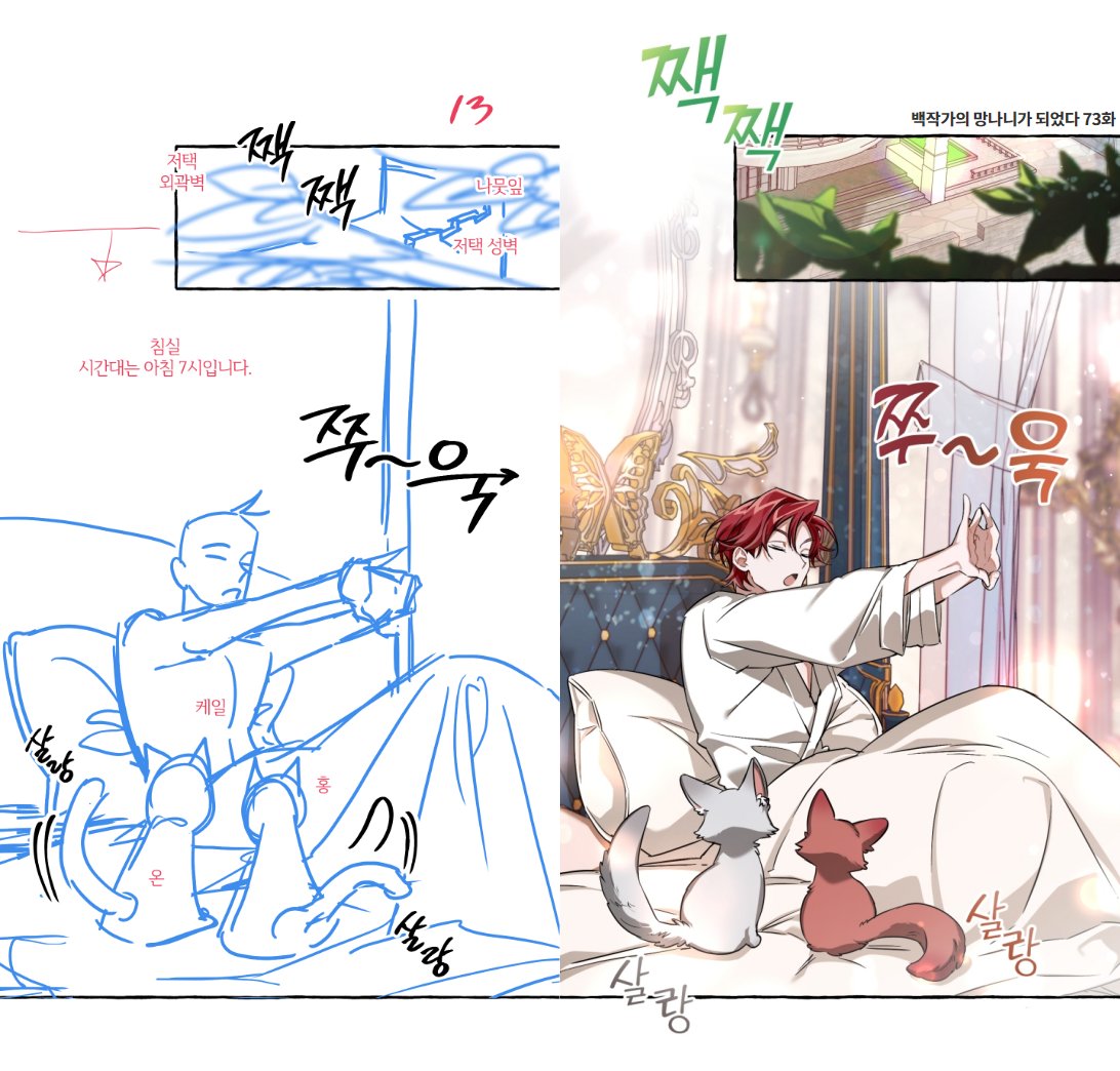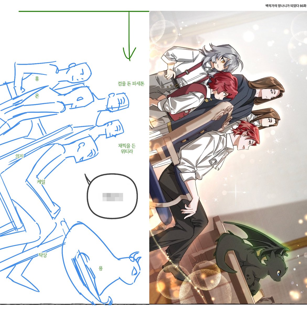 <백작가의 망나니가 되었다> 시즌2 콘티 이것저것 모아서 업로드~ 고래족 남매 디자인을 모르고 작업했었는데, 업로드 된 것을 처음 보고 너무 아름다워서 기립박수를 쳤던 기억이 있네요.🥹🖤 page.kakao.com/home?seriesId=…