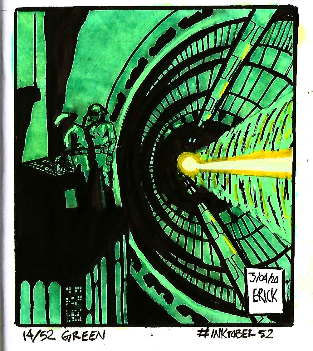 Week 14/52: Green One of the iconic scenes in A new hope, it gave me chills when I saw it again in Rogue one #inktober52 #Inktober2020 #Inktober #inktobermexico #Green #ANewHope #RogueOne #EpisodeFour #DeathStar #Laser #Machinery #Alderaan #StarWars #Forcetober #chartpak