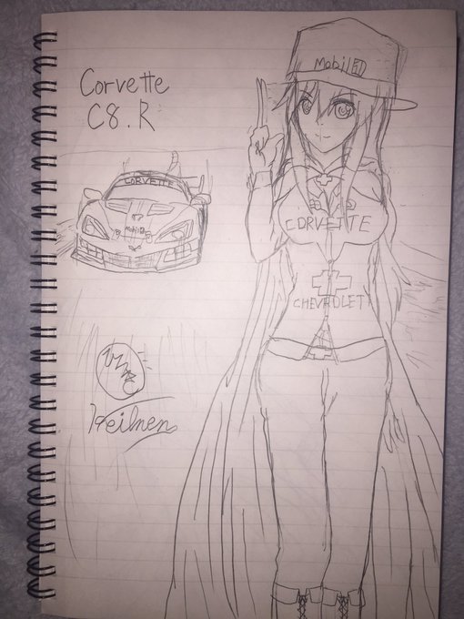 うちの子rkgk 雫コルベット姉さんとコルベットC8.Rを描いてみた(*´꒳`*) #うちの子 #rkgk #マント女子 #Chevrolet #CorvetteC8 #GTLM #モタスポファンと繋がりたい #GTS勢と繋がりたい #芸術同盟W #絵描きさんと繋がりたい
