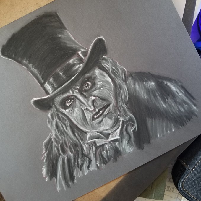 I did the Penguin from Batman: Returns for Fanart Friday this week! #drawing #charcoal #charcoalart #chalk #chalkart #monochromatic #illustration #art #artwork #traditionalart #artist #utahartist #fanart #fanartfriday #moviscene #batman #batmanreturns #thepenguin #dannydevito