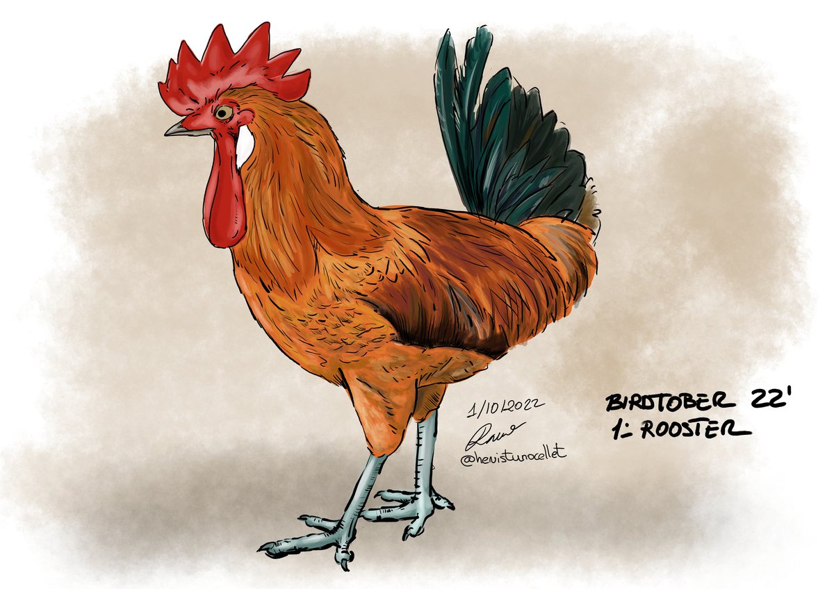 Dia 1 #birdtober, segons la llista proposada per @aholmesart , toca dibuixar un gall. Aquest inspirat en els #potablava del @ParcAgrariBaix . #birdtober #Birdtober2022 #Inktober #inktober2022 #digitaldrawing #digitalart #krita