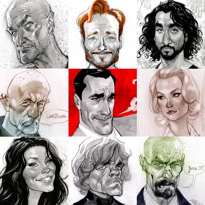 📺 #FaceYourArt TV likeness/caricature edition! Got a #FaceYourArt theme for me? Feel free to make a suggestion below! #LOST #conanobrian #MadMan #DonDraper #GoT #BreakingBad