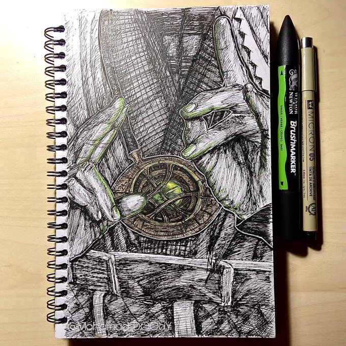 #Day19 #Inktober2021 #Loop 🔁 went with the #EyeOfAgamotto wielded by #DrStrange ! When I thought of loop I kept thinking of his scene were he trapped Dormammu in a time loop😂 Hope u guys like it✌️ IG:@Mohamad_DOOdY #inktober #drawing #marvel #art #artist #comic #spiderman #mcu