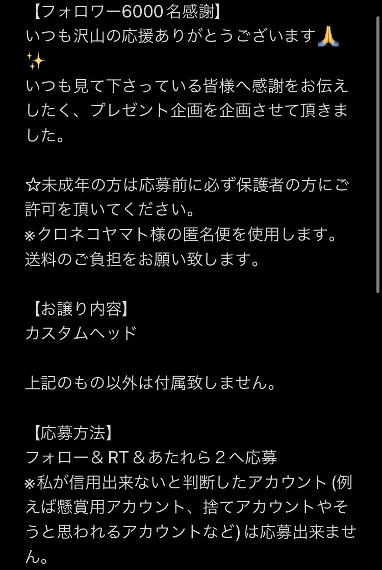 【Follower 6000名達成 感謝企画】 大変お待たせ致しました!日々の感謝をお伝えしたく、プレゼント企画を開催させて頂きます。 ■ヘッド Dollceドール Dヘッド ※難あり ■応募方法 フォロー&RT&下記リンクから応募 ■期間 2023/8/11 (土) 21:00 まで atarela2.herokuapp.com/applys/1plsCEc…