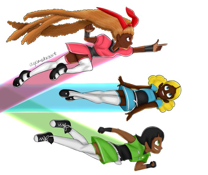 Finally drew the Powerpuff Girls for #Blacktober ✨ (specifically the versions from Cartoon Network FusionFall 😌)