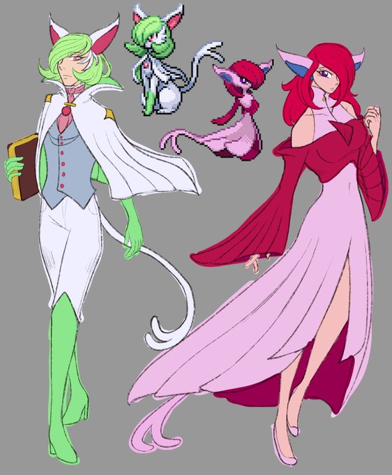 Doodles \o/ Fusions are fun to make gijinkas of and a friend showed me these ones that are absolutely gorgeous~ Messy colors because I'm sleepy fusion generator: aegide.github.io #gijinka #pokemongijinka #espeon #gardevoir #fusionpokemon #イラスト