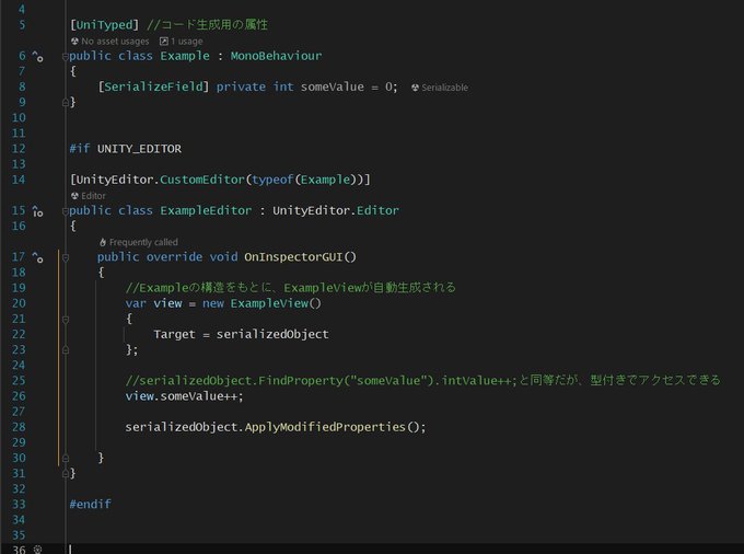 Unityのエディタ拡張の実装をめっちゃ楽にするライブラリ「UniTyped」を公開しました。 シリアライズされたデータに型付きでアクセスできるコードを自動生成します。これでもうFindPropertyを大量に書かなくていいし、型安全で保守性もよくなるはず! github.com/ruccho/UniTyped
