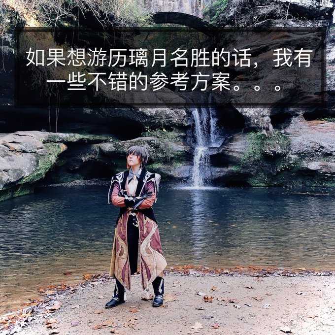 If you’d like to see Liyue’s tourist spots, I have a few references… The BeautyCam overlays were inspiring me; maybe I’ll go back and pull some more “Hocking Hillichurl” pics and edit in that style with the text overlays! 👀 #cosplay #genshinimpact #zhongli #genshincosplay