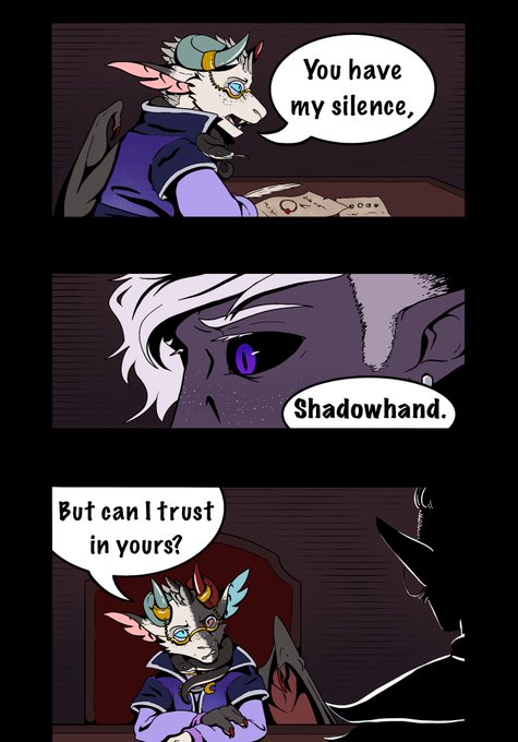 Mutually Assured Destruction - A wee #WildeGayAndAfraid comic, in which back in Rosohna, Ilmari, a 2 foot tall kobold astronomer threatens the Shadowhand of the Kryn Dynasty. - #dndart #dnd #essekthelyss