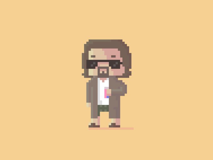 Jeff Lebowski, El Nota. El gran Lebowski (1998). Joel & Ethan Coen. 🥛🎳🤠 @TheJeffBridges #TheBigLebowski #JeffLebowski #Lebowski #TheDude #JoelCoen #EthanCoen #CoenBrothers #JeffBridges #illustration #illustrator #drawing #pixel #pixelart #design #movie