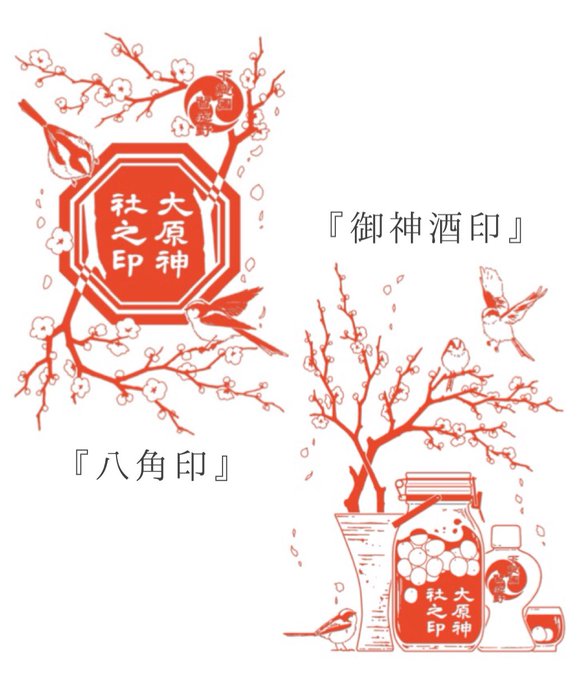 【㊗️お知らせ】 千葉県習志野市⛩大原神社さまにて 今月10/1から頒布されている 御朱印デザインを京楽堂が担当させていただきました‼️ 見開き御朱印の 『八角印』 『御神酒印』 ぜひお参りの際に頂いてみて下さい✨ 👇 ohara-jinja.com/goshuin/