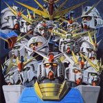 ガンダムVSガンダムというタイトルも最高に頭が悪いが この地獄の釜の蓋が開いたみたいな構図のラフは連邦VSジオンに引き続き彼トミチンが描いということです 大河原先生に描いていただくことですべてが浄化されるという図式である twitter.com/manpuku_jinja/…