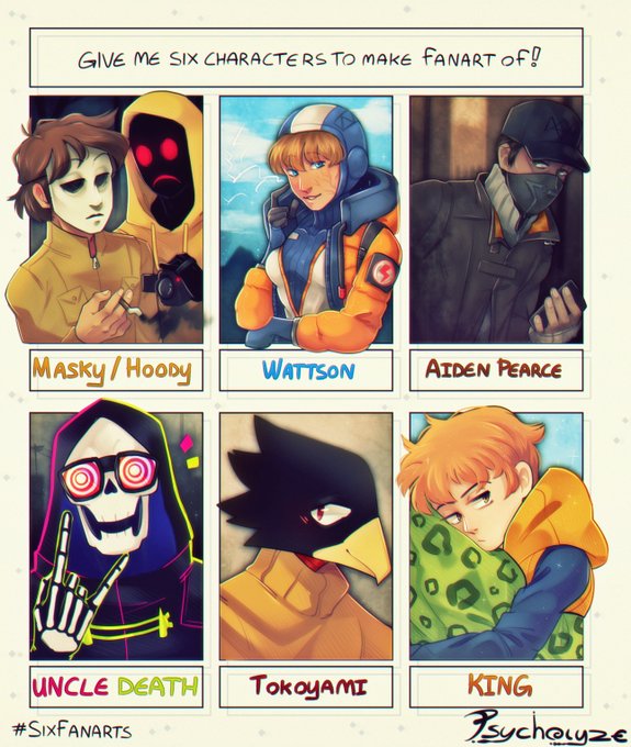 #SixFanarts ! Really happy with how these all came out 👌 #MarbleHornets #ApexLegends #WatchDogs #LetItDie #MyHeroAcademia #SevenDeadlySins
