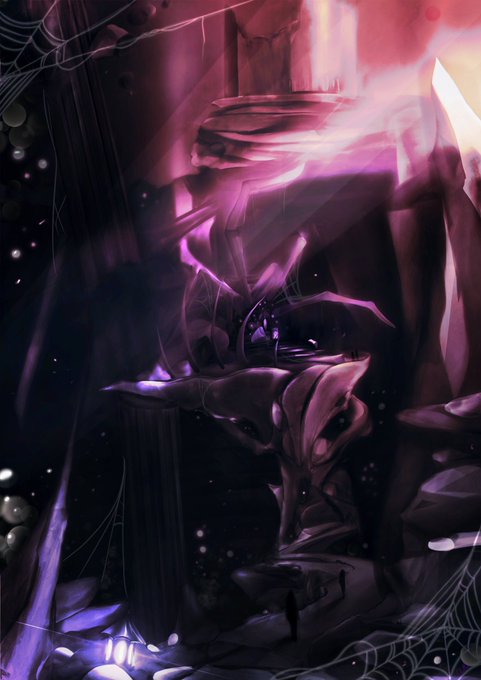 (CW: Spiders) The Demonweb, planar domain and seat power of the Spider Queen, Lolth 2nd painted work for #BeyondTheDivineGate over at @ExandriaArtists 💜🖤 #CriticalRoleFanArt