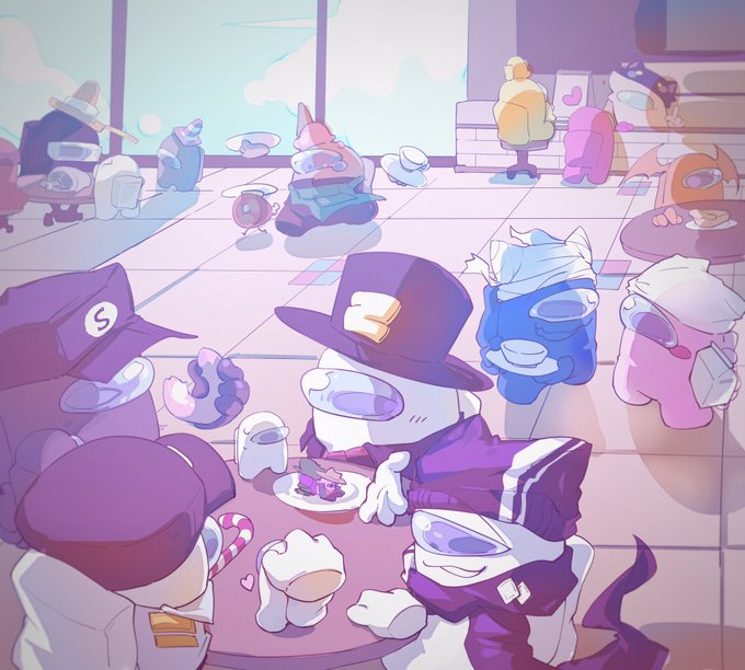 A quiet and peaceful lunchtime But some of these guys look familiar......? A partially painted bean! I'll draw the rest slowly....maybe(目移) 既然不是纯v4俺就不打v4tag了(悲) #AmongUs #amongusOC #amongusfanart