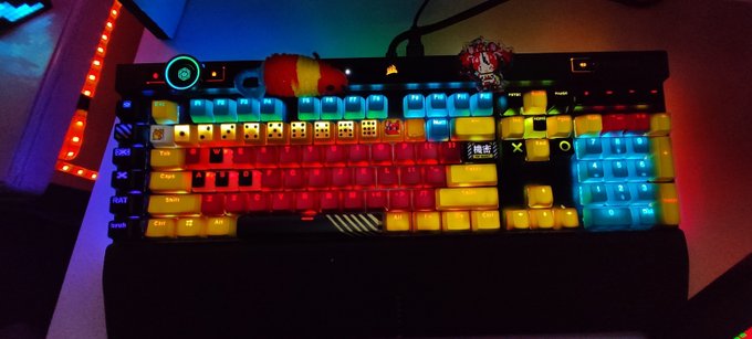 the rrat keyboard/setup is ready! I painted the macros and the number dices and got a custom rat keycap (and the cheese!) and... stole the smol rat plush from my cat lmao (I suppose if I drew the keycaps it should go in #BaelzBrush ? )