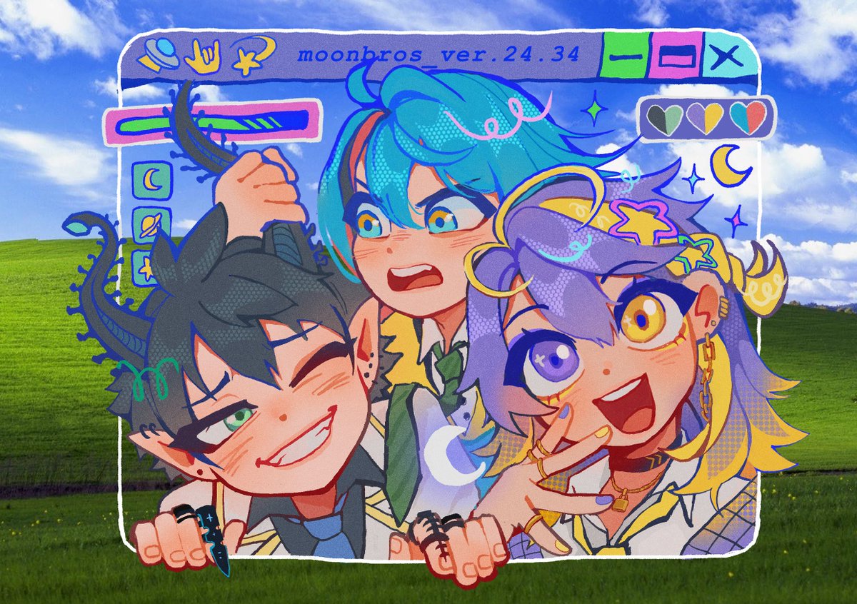 the alien, the star and the guy who is friends with the moon. 🌙 excited for the podcast!! #kyonail #DrawKyo #Arcadiart #RenZottoArt #moonbros