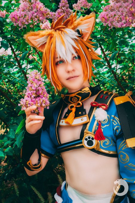 Idk I just like taking photos with flowers If I haven’t mentioned it before I’m very thankful to have been able to shoot Gorou at OMGCon cause of the unfortunate costume crushing on the way back 😬 Photo by krazykat (Instagram) #cosplay #genshinimpact #gorou