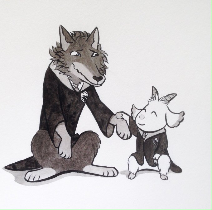 h-hogwarts au.....(they're both hufflepuffs) #arashinoyoruni #onestormynight #gabu #mei #inktober #inktober2018