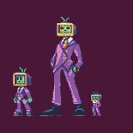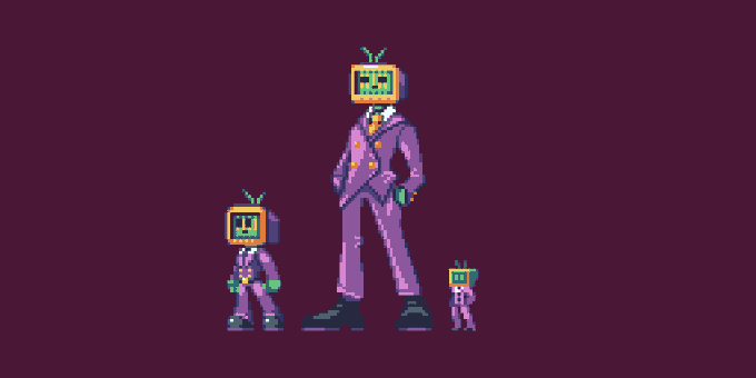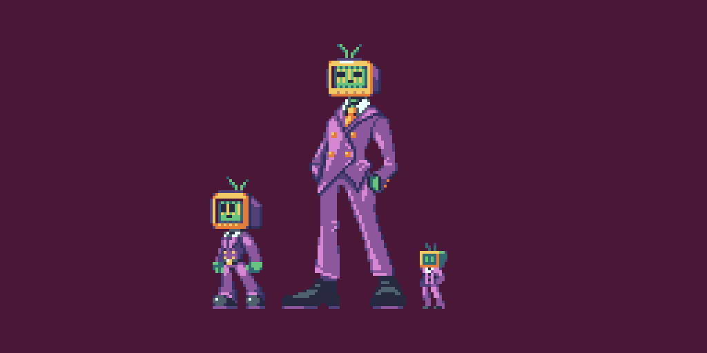 Next on #PixelChallenges we're tasked with Upscaling our previous artwork once more without adding new colors! Hence, we now have a little family of @UppernateBB 's OC. Hope you like em! #pixelart #ドット絵