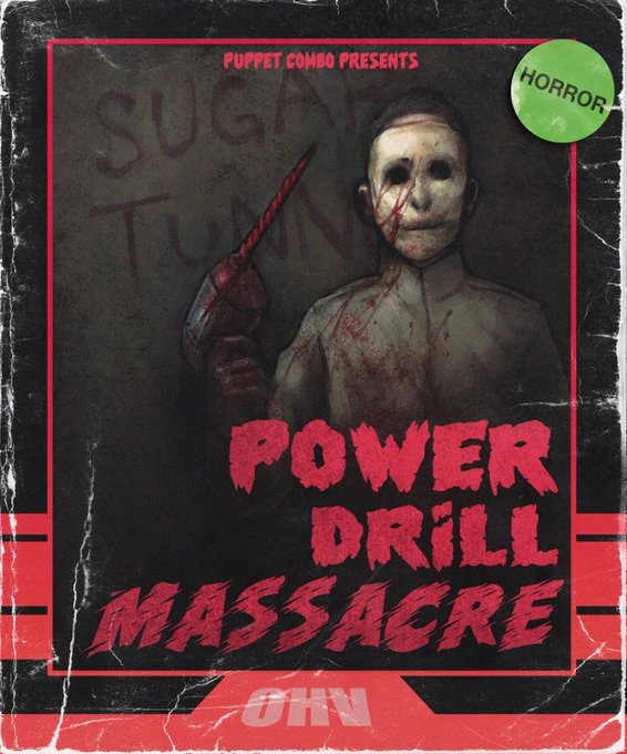 Inktober day 12 Killer Happy 5th anniversary of Puppet Combo’s Power Drill Massacre. Since 2015 #inktober #inktober2020 #sketch #sketchbook #glitchstudio #oldtvfilter #powerdrillmassacre @PuppetCombo