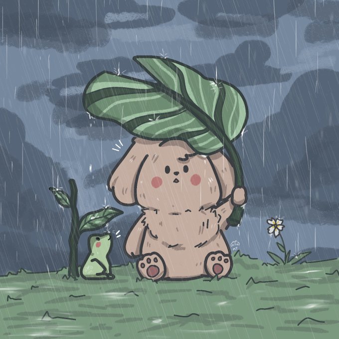 PuppyM met a new friend while playing in the rain 🌧️🐶🐸 #StrayKids #스트레이키즈 #Straykidsfanart #skzoo #SKZOOfanart