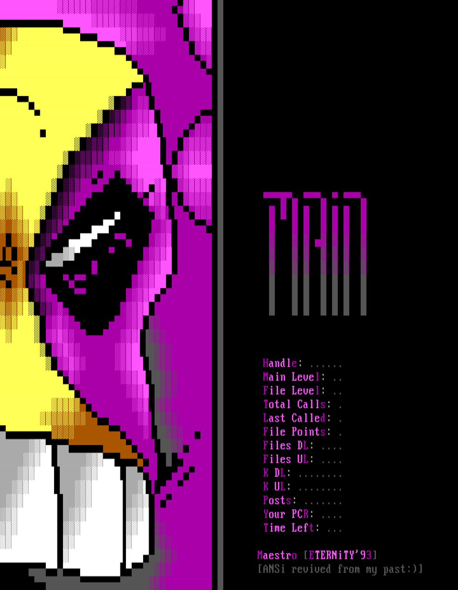 Andromeda —- ANSI by Lord Soth // iCE (1994) @jonshiring #ansiart #ansi #ascii #asciiart #pixelart #textmode #textart #text #art #demoscene #bbs #retrocomputing #retrographics #graffiti #graffitiart #imagecomics #image30thanniversary #comics #comicbookart #samkieth #themaxx