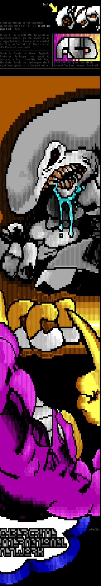 The Maxx ANSI by Aphex Twin // ACiD (1994) #ansiart #ansi #ascii #asciiart #pixelart #textmode #text #art #demoscene #bbs #retrocomputing #retrographics #8bit #8bitart #typography #graffiti #graffitiart #imagecomics #image30thanniversary #comics #comicbookart #themaxx #samkieth