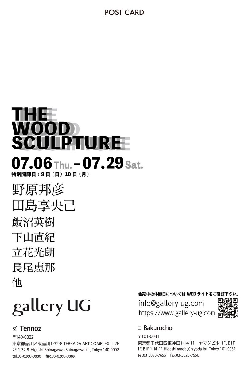 THE WOOD SCULPTURE 7/6 ~7/29 11:30 ~18:30 休廊日 (16日 17日 23日 24日 休廊) 東京 gallery UG Tennoz 画像1枚目の絵について↓ shidokou.blog20.fc2.com/blog-entry-152…