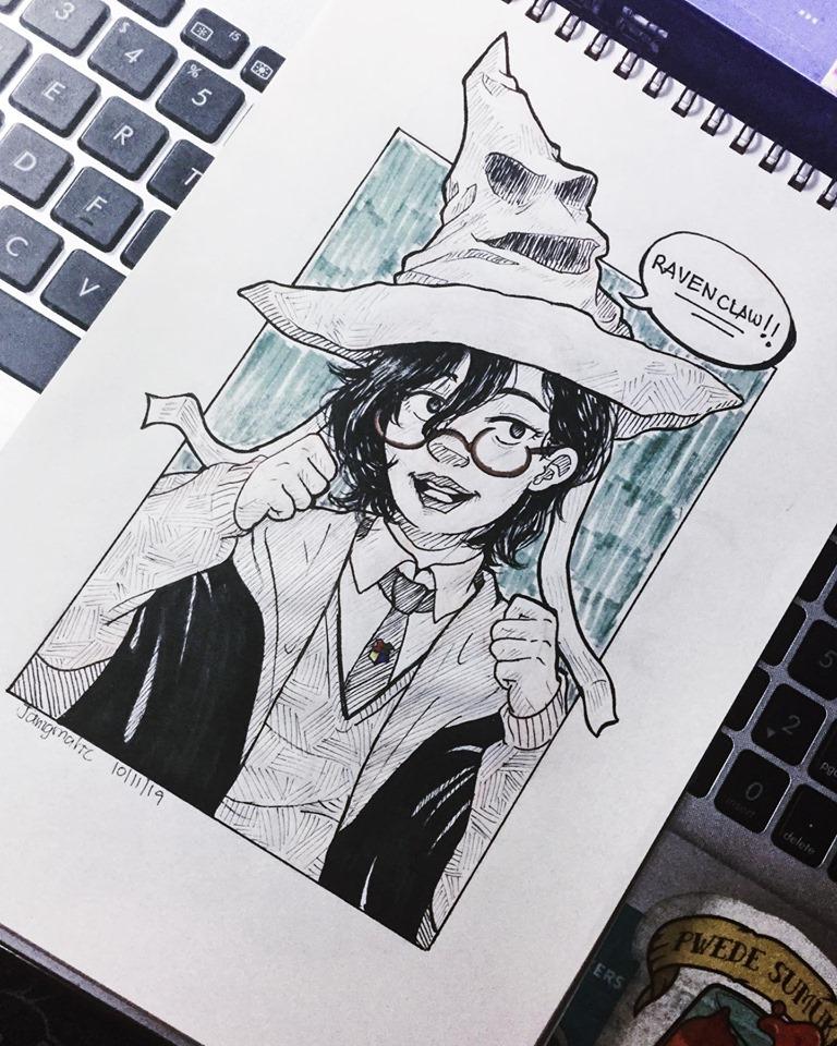 "Or yet in wise old Ravenclaw, if you've a ready mind. Where those of wit and learning, will always find their kind.." Day 10: Hat ✨✨ #artph #inktober2019 #ink #markers #illustration #drawing #pottersona #inktober #hogwarts #ravenclawhousepride #houseofravenclaw #sortinghat