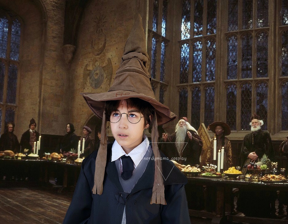 Not Slytherin, eh? Are you sure? You could be great you know. 🐍 #harrypotter #harrypottercosplay #hogwarts #sortinghat #castle #house #gryffindor #slytherin #cosplay #kidcosplay #wizard #magic #edit
