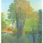 A landscape filled with flowers, shrubs, trees and a set of mountains along with a large green kanji in a centered position. #spring #springday #springdays #springseason #spring2022 #art #artist #artwork #digital #digitalart #digitalartwork #illustration #illustrator #photoshop