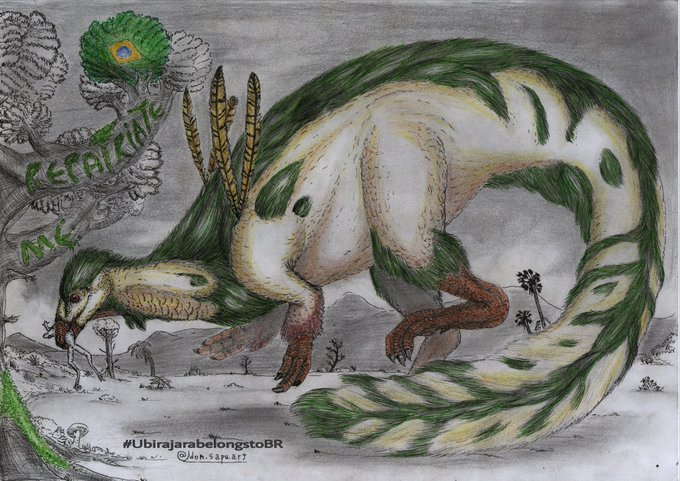 Repost pela ocasião da baixaria dos grigos, #UbirajarabelongstoBR #paleoart #decolonizepaleontology #decolonizescience #Ubirajarajubatus #Compsognathidae #dinosaur
