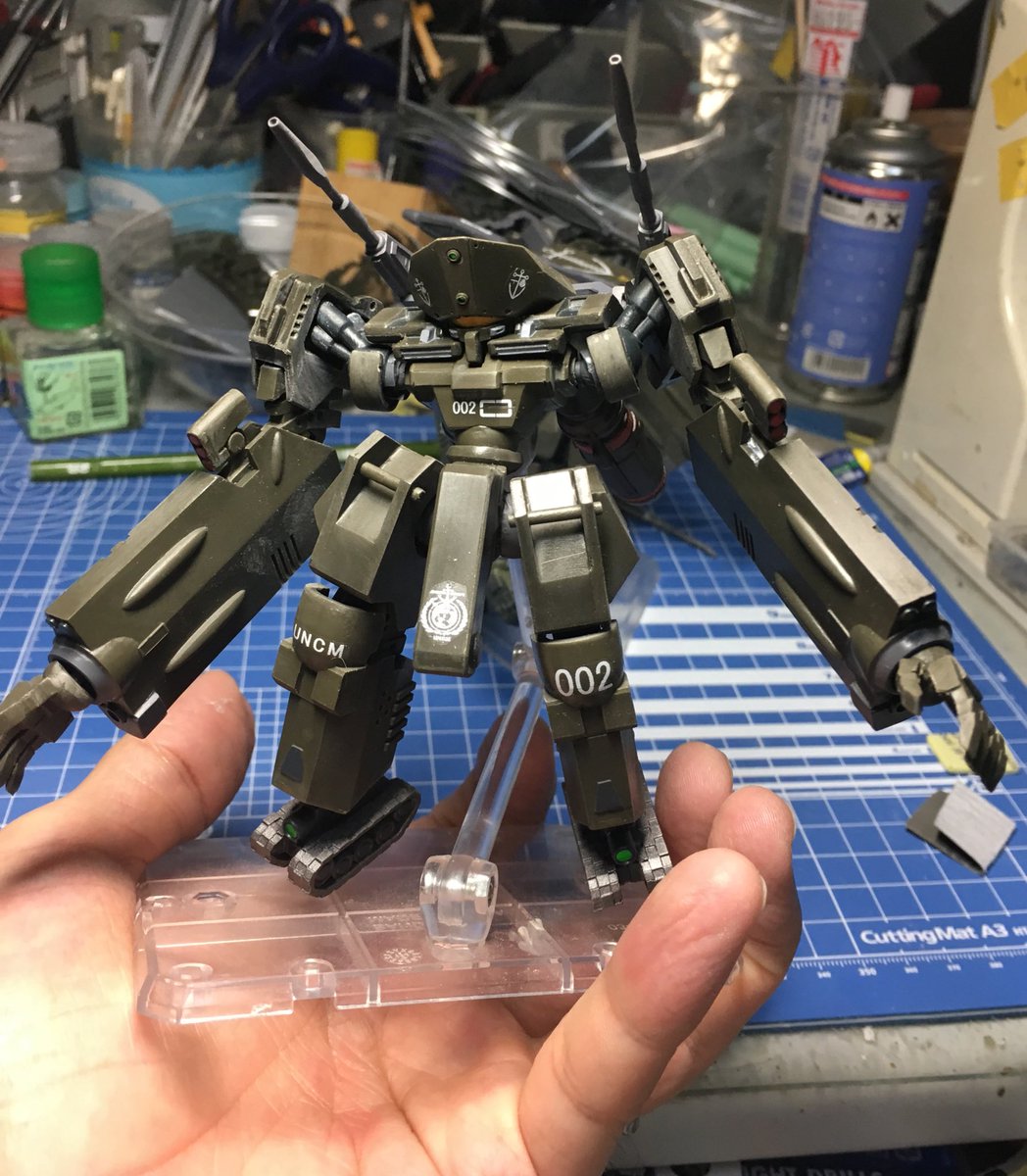 2式空間機動甲冑のアクション。 劇中では飛び回って撃ちまくって支えまくってましたねー。 可動で組むと色々楽しめます。 2機組んでも色々楽しめますぞ。 ダークグリーン成型で部分塗装で写真のようになります。 デカール付属です。 1/35相当のスケールです。 ※関節部品は別売 #wf2020w #yamato2202