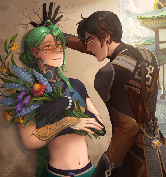 Caught after the morning herb gathering🌿✨ #Baizhu #ZhongLi #GenshinImpact #GenshinImapct #genshinimpactfanart #原神 #zhongzhu